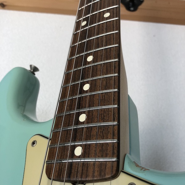 フレットのすり合わせで、元よりも弦高をさげても音詰まりが解消されました。